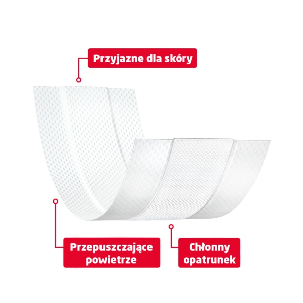 • Miękki i delikatny opatrunek dla skóry wrażliwej i skłonnej do podrażnień.
