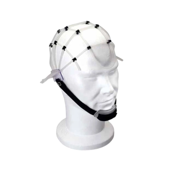 - Silikonowy czepek do wykonywania badań EEG, z komfortowym podbródkiem.