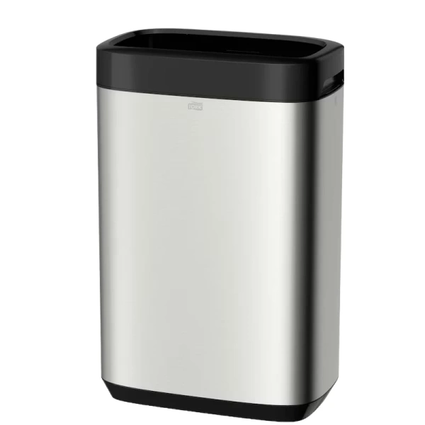 Estetyczny kosz na śmieci, który może być zamontowany na ścianie lub podłodze. Jego opływowe kształty ułatwiają codzienne czyszczenie. Został wykonany z wytrzymałego materiału.