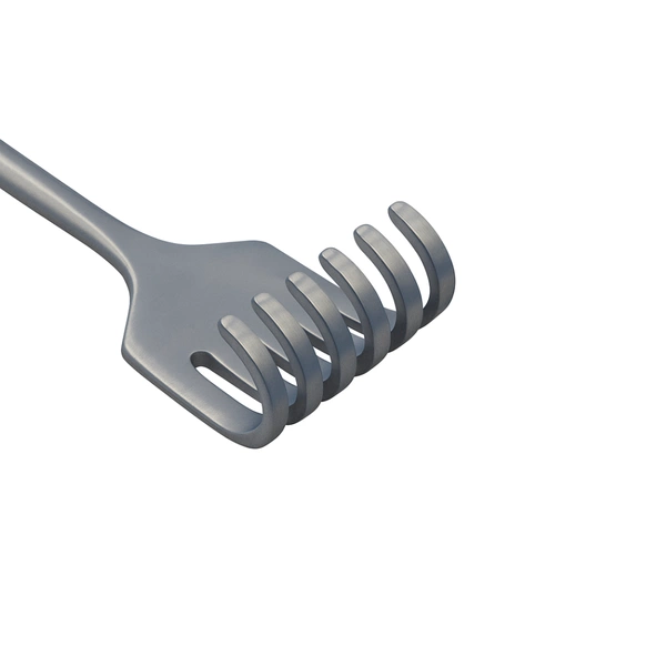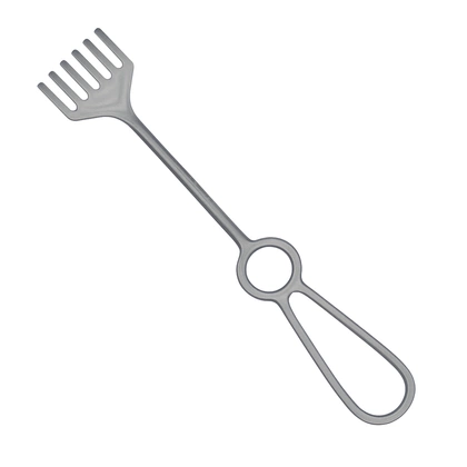 - Retrakcyjny hak Kochera do rozszerzania tkanek w celu dotarcia do przestrzeni podskórnych. Wielokrotnego użytku, ze stali nierdzewnej.