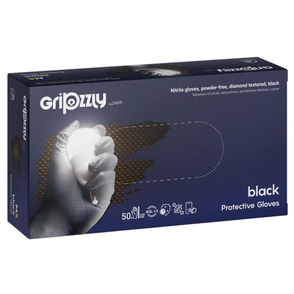 Gripzzly rękawice nitrylowe bezpudrowe czarne (50 szt.) - rozm. L