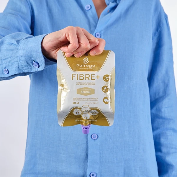 Kompletna pod względem odżywczym, normokaloryczna dieta o obniżonej zawartości węglowodanów, zawierająca błonnik rozpuszczalny, przeznaczona do podawania przez sondę dojelitową lub doustnie. Zawiera niezbędną dobową porcję wszystkich składników odżywczych, w tym witamin i mikroelementów. Do postępowania dietetycznego u pacjentów niedożywionych lub zagrożonych niedożywieniem związanym z chorobą. Błonnik rozpuszczalny wspomaga prawidłowe funkcjonowanie jelit, w szczególności po kuracji antybiotykowej, przy biegunce lub zaparciach. Nutrego Fibre+ może być również stosowany u pacjentów z cukrzycą. Nie zawiera glutenu ani laktozy, dlatego jest odpowiedni dla osób z nietolerancją laktozy i chorobą trzewną.