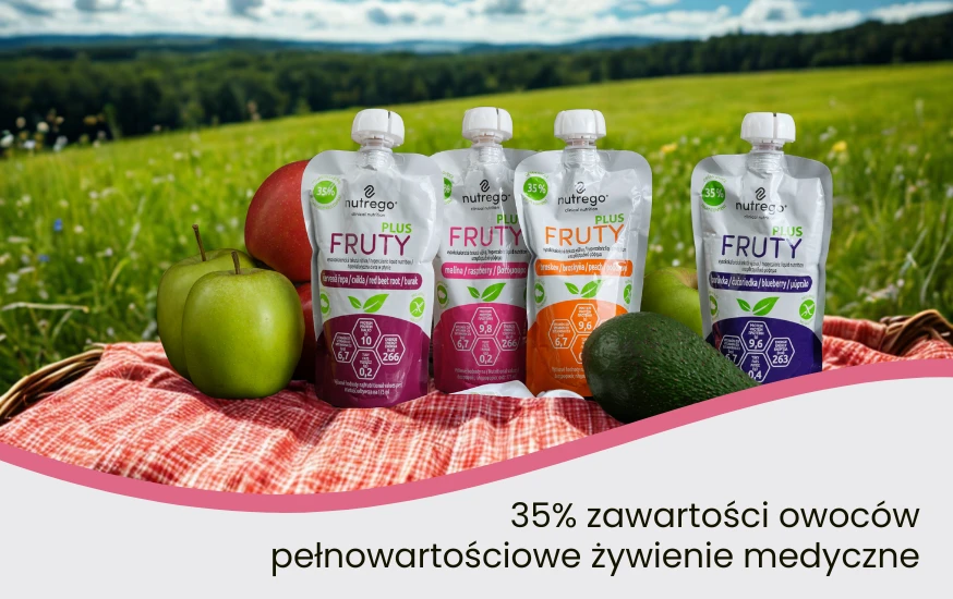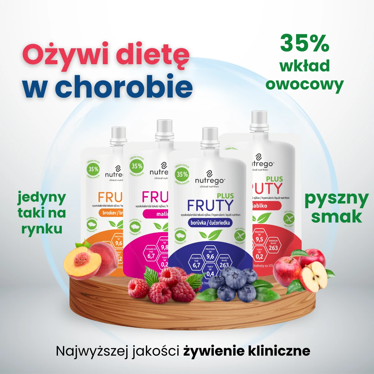 Nutrego Fruty Plus to drink odżywczy z 35% zawartością owoców, nie zawiera tłuszczu, jest bogaty w witaminę D