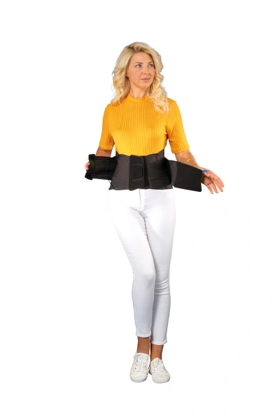 Łagodzi ból w odcinku lędźwiowym, podtrzymując kręgosłup poprzez zwiększenie nacisku na wysokości brzucha. Zapewnia to zmniejszenie obciążenia krążków międzykręgowych.