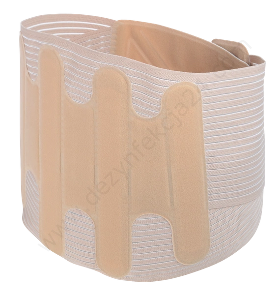 Łagodzi ból w odcinku lędźwiowym, podtrzymując kręgosłup poprzez zwiększenie nacisku na wysokości brzucha.