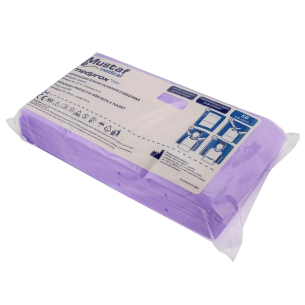 Śliniak stomatologiczny z kieszenią (50 szt.) - fioletowy