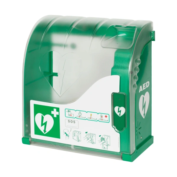 - Szafka AED do przechowywania defibrylatora na zewnątrz budynku. Wyposażona w system ogrzewania i wentylacji, alarm dźwiękowy i świetlny.