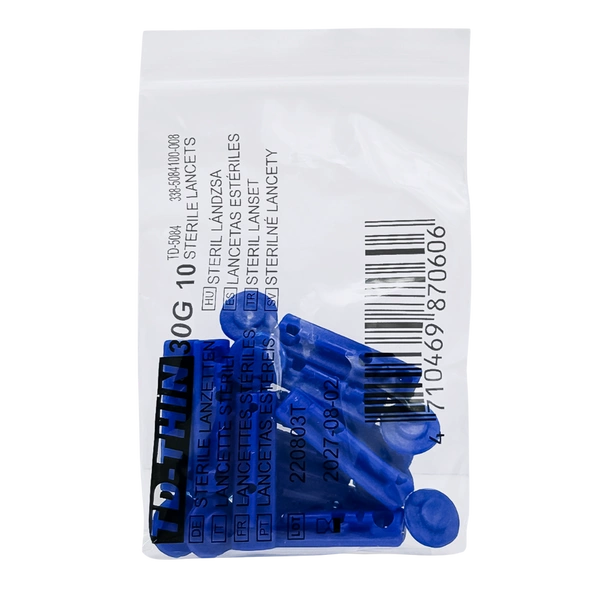 - Sterylne lancety o cienkim, szlifowanym ostrzu, które pozwala na niemal bezbolesne nakłucie. Odpowiednie do większości nakłuwaczy dostępnych na rynku.