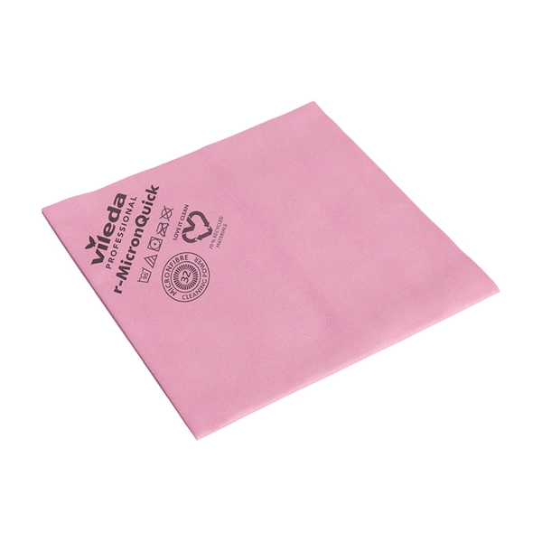 r-MicronQuick to profesjonalna ściereczka z mikrofibry do sprzątania na sucho, wilgotno i mokro, zaprojektowana do pracy w standardach higienicznych placówek medycznych, HoReCa oraz obiektów o podwyższonych wymaganiach. Wykonana nawet w 70% z mikrowłókien z recyklingu, skutecznie czyści mikroskopijne struktury i usuwa do 99,99% wirusów i bakterii wyłącznie przy użyciu wody.