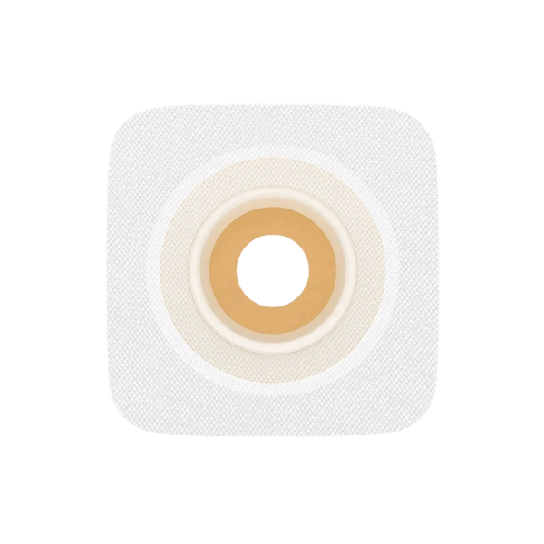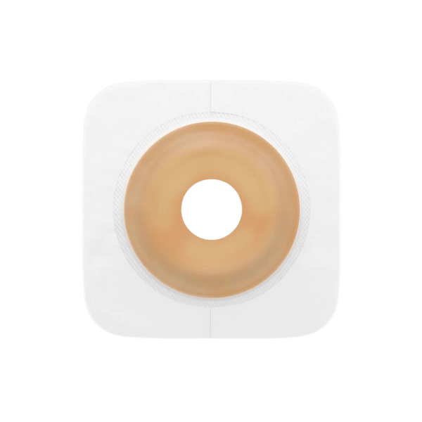 Płytka wykonana jest z materiału Durahesive®, który pod wpływem treści jelitowej pęcznieje, szczelnie otulając stomię i tworząc barierę ochronną. Można ją modelować palcami, bez użycia nożyczek. Elastyczny, fizelinowy kołnierz zwiększa komfort podczas ruchu.