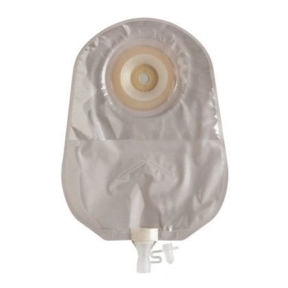 Jednoczęściowy, przezroczysty worek urostomijny zaprojektowany z myślą o osobach z urostomią, które potrzebują delikatnej wypukłości dla lepszego dopasowania i szczelności systemu.